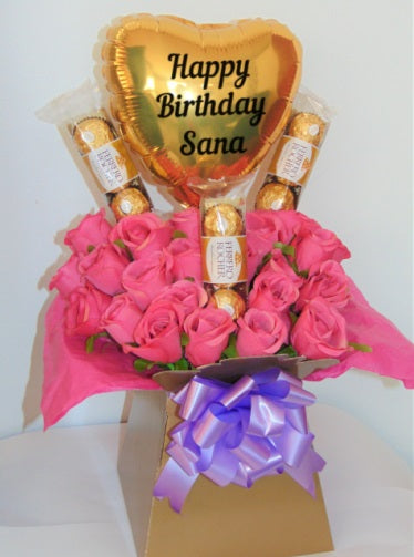 Flower & Chocolate Gift Bouquet With Balloon Mother's Day Gift Hamper Gift Box