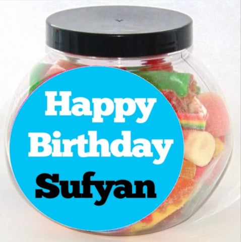 Personalised Blue Halal Pick N Mix Sweet Jar