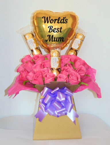 Flower & Chocolate Gift Bouquet With Balloon Gift Hamper Gift Box