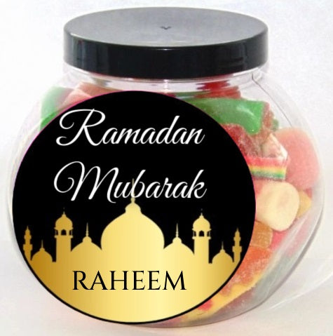 Personalised Eid/Ramadan Mubarak Halal Pick N Mix Round Sweet Jar